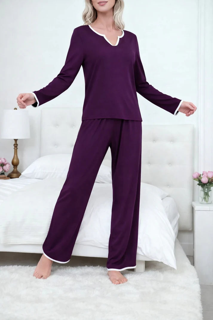 (New) Maroon Plain V Neck with Bow Full Sleeves night suit with plazo pajama The Ultimate Dream Wear Loungwear (OM-1159)