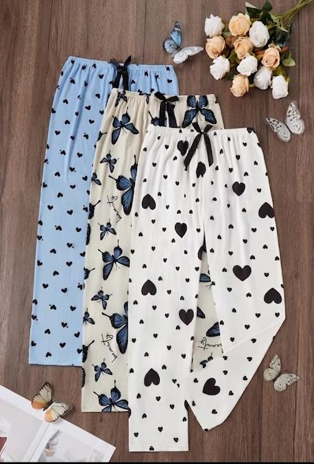 Pack Of 3 Multi Colored Hearts Printed Plazzo Pajamas For Ladies