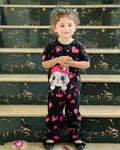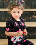 Black Kitty With Pink Hearts Printed The Ultimate Kids Sleep Suit (OM-367)