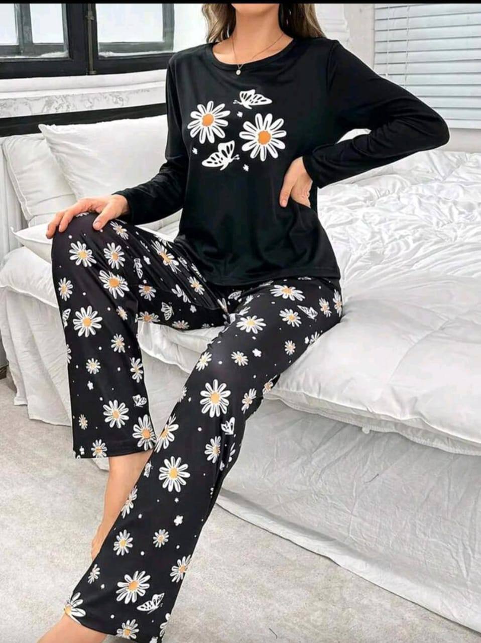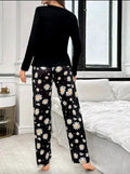 Black Sunflowers Printed Full Sleeves PJ The Ultimate Dream Wear Sleep Suit (OM-153)