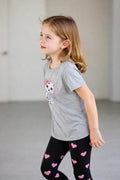 Grey Cute Cat printed T.shirt with black hearts printed pajama kids night suit The Ultimate Kids Sleep Suit (OM-397)