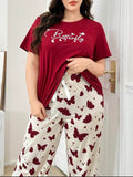 Maroon Butterfly Printed Half Sleeves Tshirt with Butterfly Trouser Dream Wear Sleep Suit (OM-120)