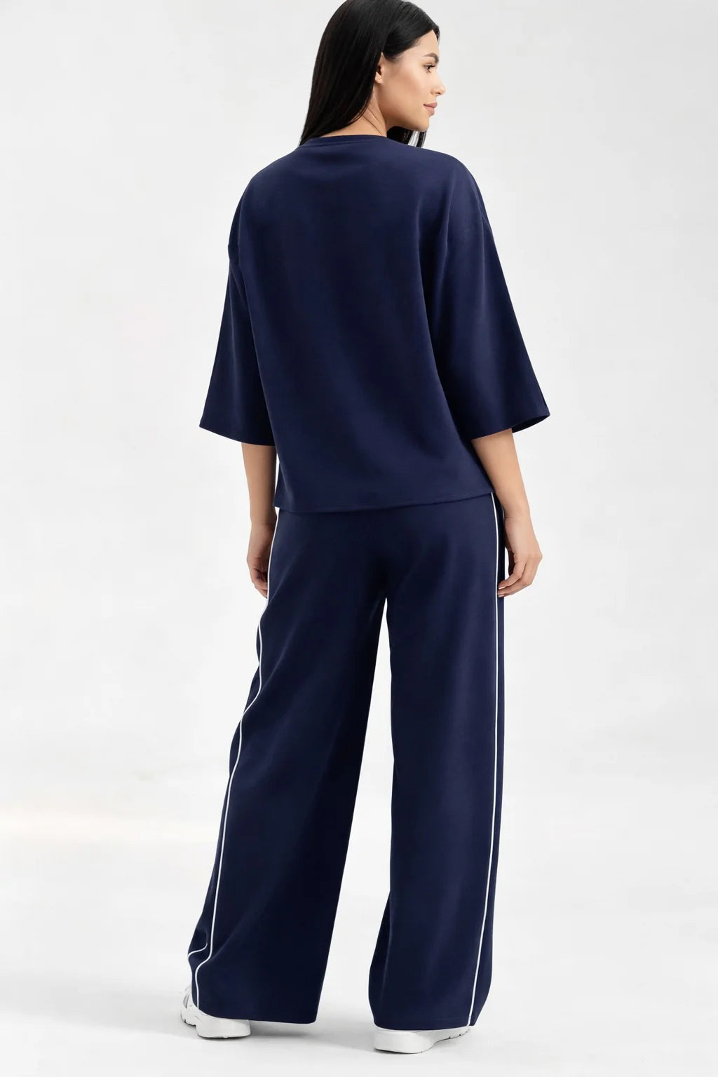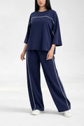 Navy Blue with White lining Plain plazzo The Ultimate Dream Wear Loungwear (OM-1161)