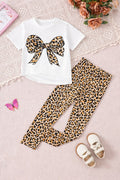 Off white half sleeves Cheeta BOW printed t shirt with cheeta pajama kids suit The Ultimate Kids Sleep Suit (OM-411)
