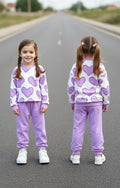Off White Lilac Hearts Little Trendsetter Stylish Kids Winter Tracksuit (OM-630)