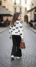 White with Black Bow Little Trendsetter Stylish Winter Kids Tracksuit (OM-627)