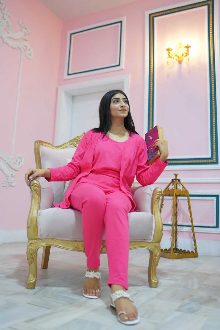 Women’s Elegant Shocking Pink 3-Piece Lounge Set (OM-1149)