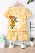 Yellow bear with basket ball printed kids suit The Ultimate Kids Sleep Suit (OM-414)